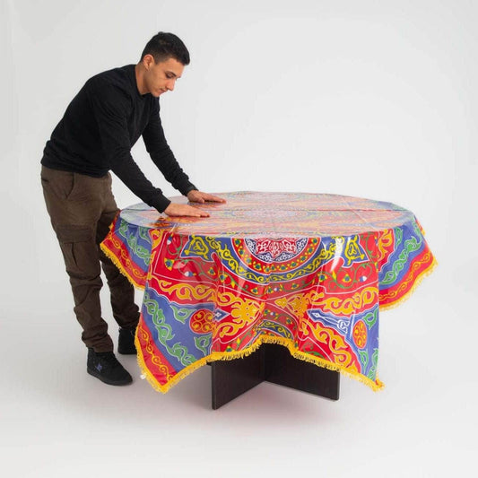 مفرش بلاستيك ذهبي مزين بشراشيب - 100 * 135