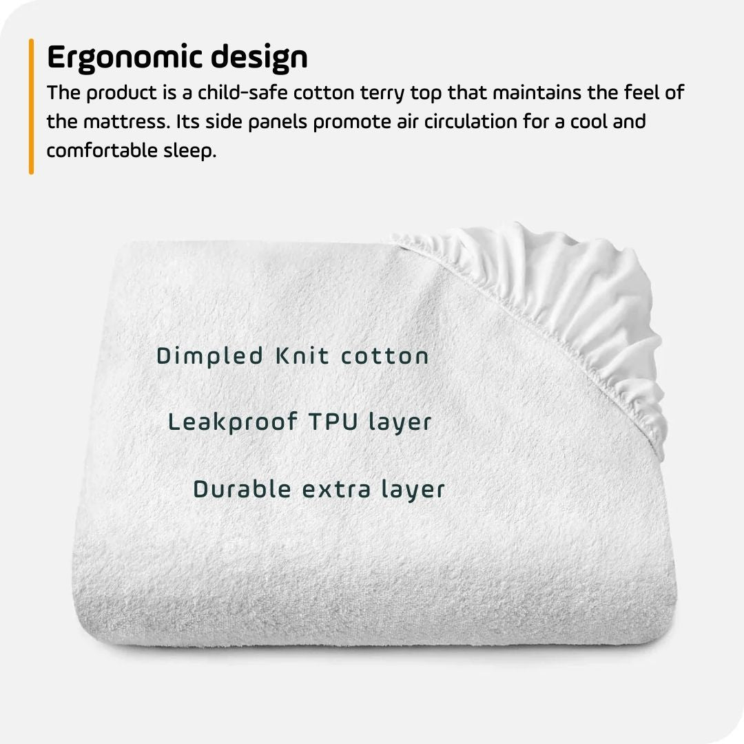 تمتع بنوم مريح مع غطاء المرتبة الخاص بنا! ناعم ومريح، ويوفر طبقة واقية ضد الانسكابات وتسريبات السوائل للمشروبات والاطعمة. يوفر النمط المسامي الخفة، بينما تضمن الطبقة المقاومة للماء الموجودة بالأسفل المتانة. استمتع بالنوم بشكل مريح، واطمئن أن مرتبتك بامان.